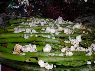 Asparagus with blue cheese, balsamic vinegar and toasted walnuts